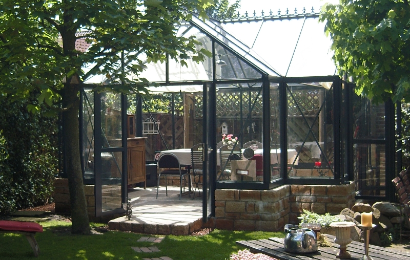 Bei einem weitläufigen Gelände sind Orangerien ein echter Blickfang, in einem kleinen Garten empfehlen sich Anlehngewächshäuser, bei denen eine Hausmauer als Rückwand und zusätzliche Wärmequelle fungiert.
