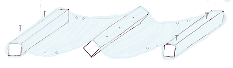 Nun schneiden Sie die Folienbahnen für die Seitenteile zu. Benötigt werden 3 Bahnen (ca. 570 cm x 90 cm), die jeweils von einer Seite des Gewächshauses bis zur anderen Seite reichen. In die Mitte der zwei äußeren Bahnen werden die 92,5 cm langen Kanthölzer und an deren Ränder die 90 cm langen Hölzer mit Nägeln befestigt. An die mittlere Folienbahn werden die drei 90 cm langen Hölzer genagelt.