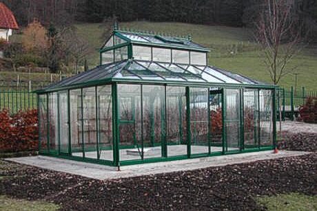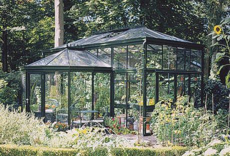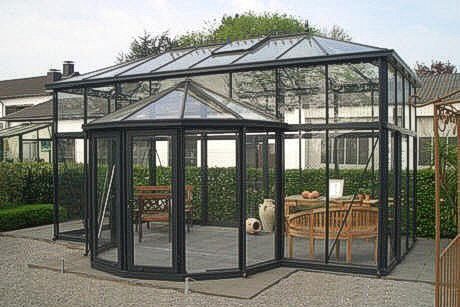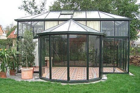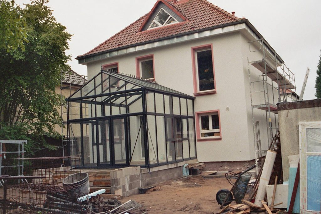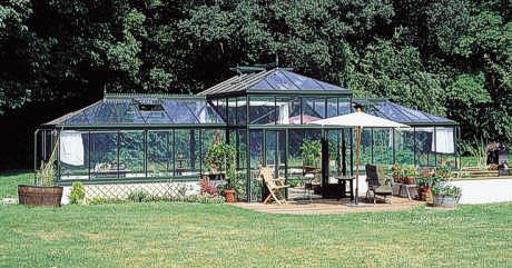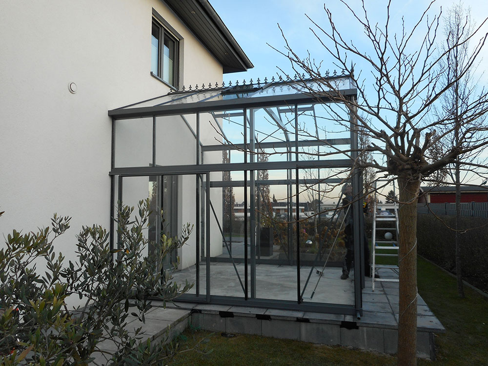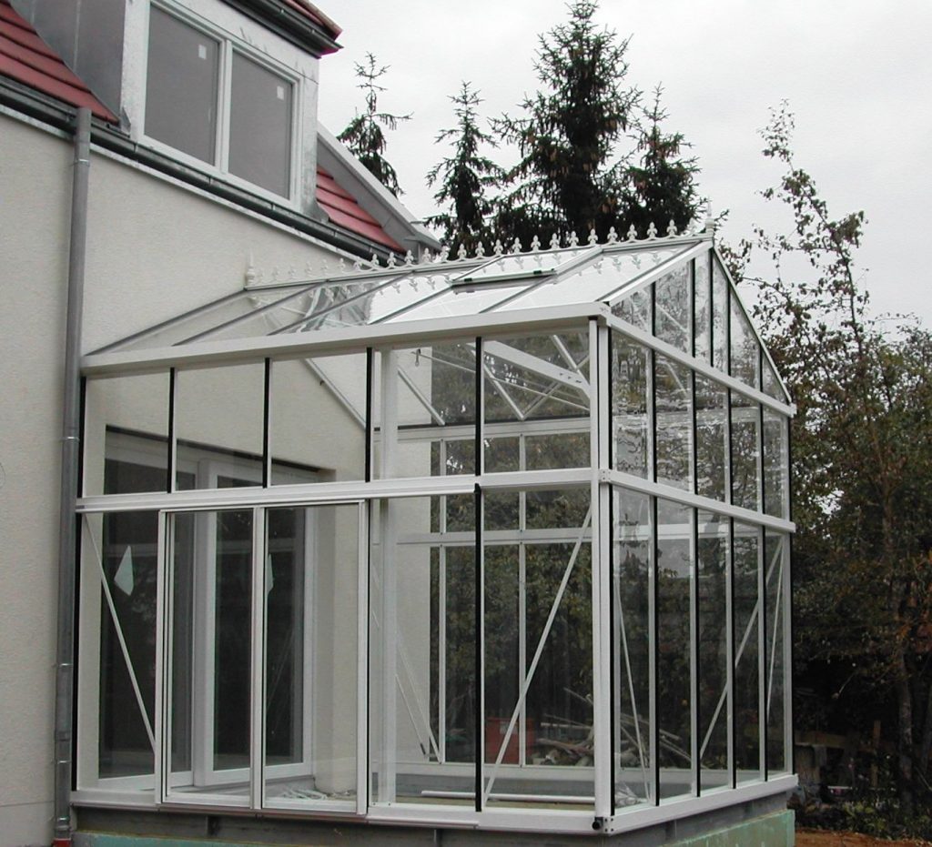 Der Unterschied zur normalen Orangerie ist, dass diese Anlehnvarianten mit einer Giebelseite an die Hauswand angebaut werden.
